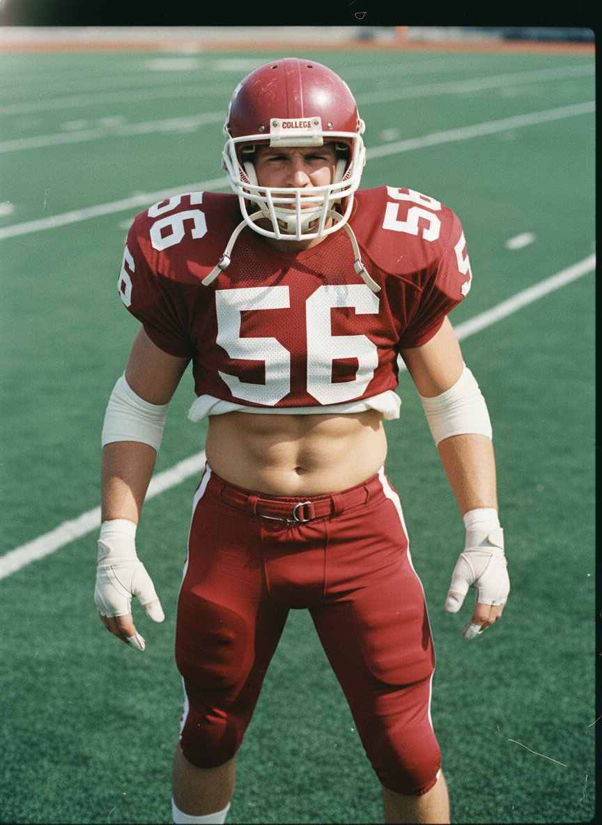 The Sheriff Years (ver. 1.0), 1975. This is Jimmy, College’s First-Team All-American middle linebacker and an Academic All-American. Despite his reputation as a hard hitter, Jimmy is a nice guy and a good student. Has a one-year renewable full-ride scholarship that covers tuition, room and board, and books. Jimmy almost didn’t make it past his freshman year; College’s Head Coach thought Jimmy was too skinny to play linebacker and wanted to yank his scholarship and give it to someone else. Jimmy’s high metabolism means he constantly eats, which is a problem since his scholarship only covers three meals a day. Jimmy needs a chemistry tutor and lab equipment, but his scholarship doesn’t cover either. He doesn’t even have enough money to put gas in the car. Slick Jim, the big money booster for College, once tried to hand Jimmy a sack of cash. Jimmy knows the penalty for accepting booster money, so he returns it. Jimmy’s parents travel to see his games because College is rarely on television.